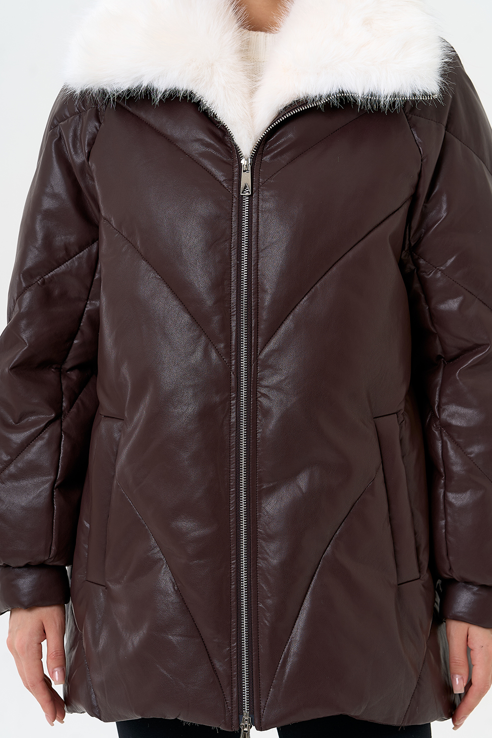 Отделка воротника - съемный эко мех, цвет белый